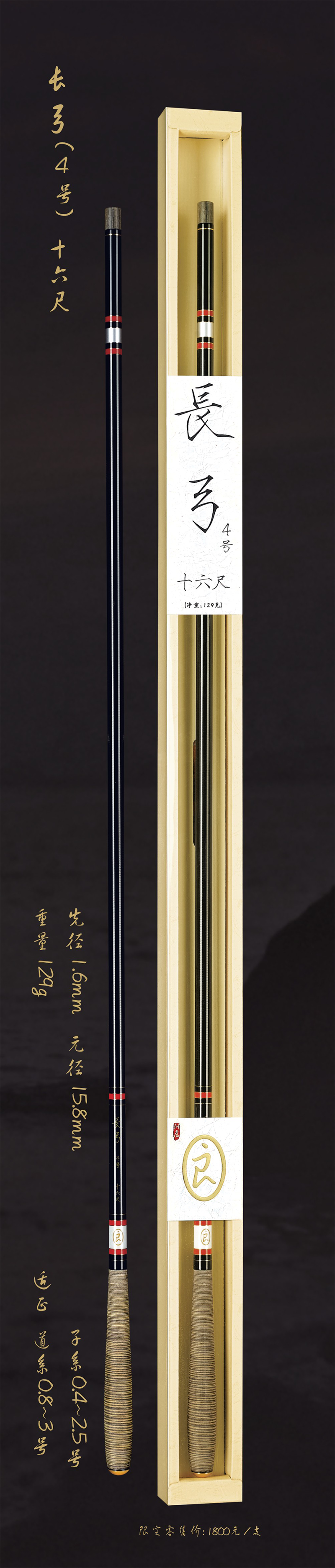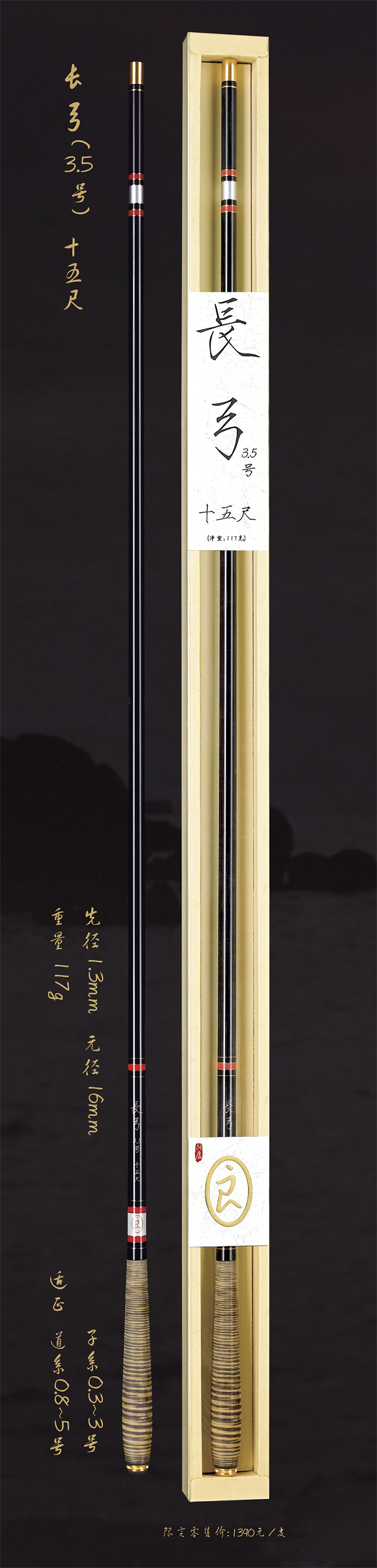 深圳市一良致釣有限公司經過專業研發,反復調試現推出長弓3.5號十五尺,長弓3.5號十八尺,長弓4號十六尺三款新品釣竿。