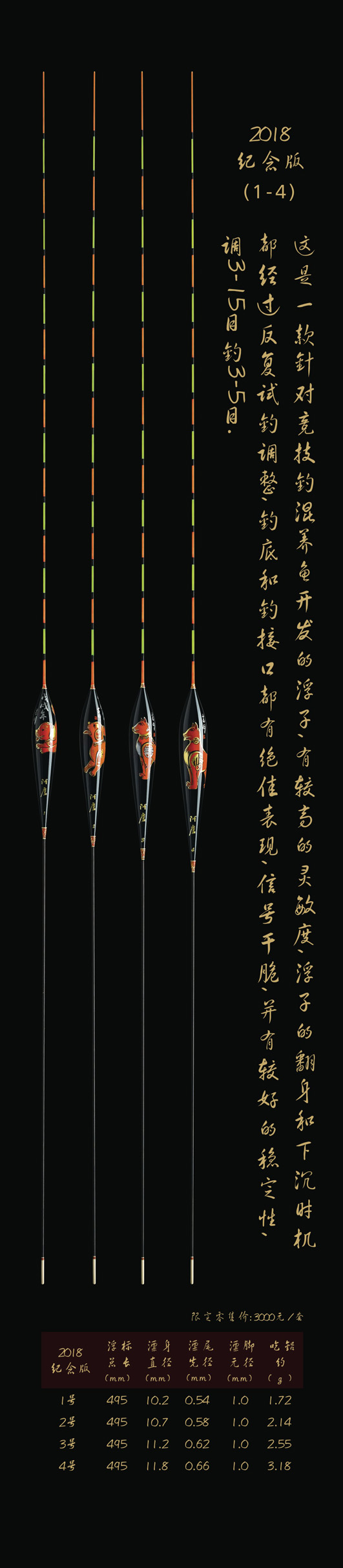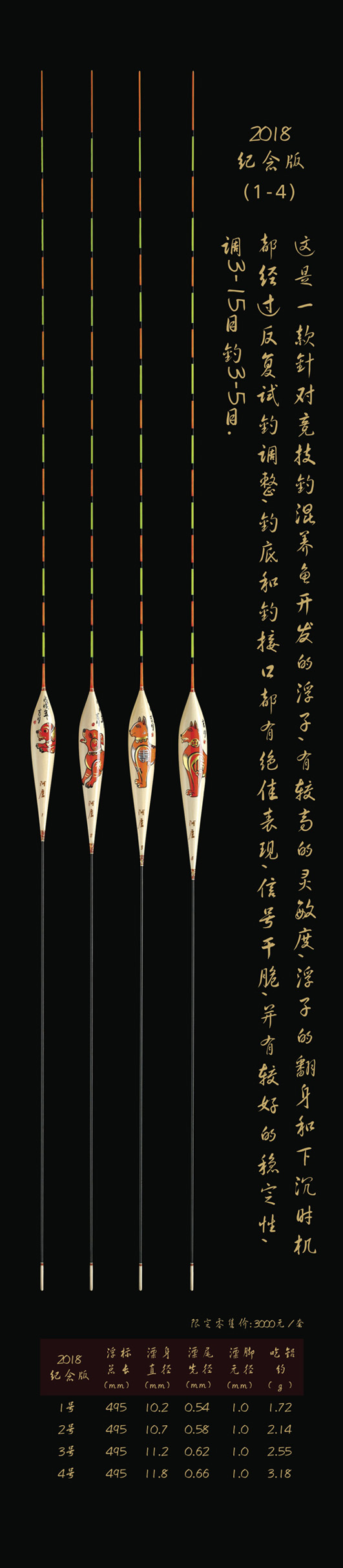 深圳市一良致釣有限公司,2018戊戌(狗)年精心設計推出象征著運旺時盛,福旺康泰的限量紀念版浮漂。